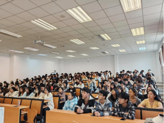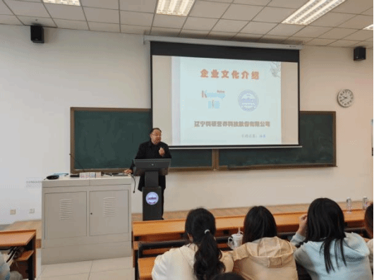 随后,辽宁科硕营养科技股份有限公司的行政总监张梁为同学们带来专题讲座,深入介绍了企业文化和车间工艺流程,让学生对企业运作模式有了更直观的认识。他鼓励同学们把握当下实习契机,夯实专业知识基础;在实践中拓宽视野,实现理论与实践的深度融合;科学规划职业生涯,以持之以恒的态度追求进步。