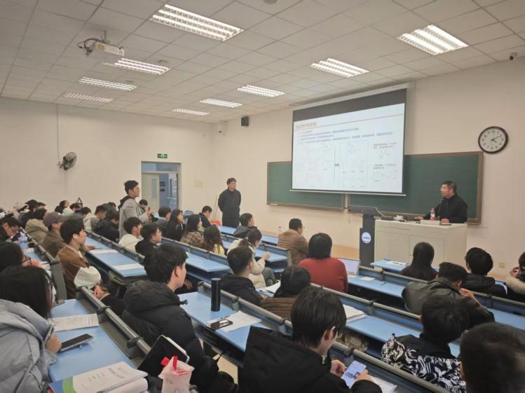 蒋翔锐研究员以“RNA病毒蛋白酶抑制剂研究”为题作学术报告,介绍了其团队在抗新型冠状病毒药物研发中的系列工作。该研究综合运用药物化学、计算化学和结构生物学等多种手段,针对新型冠状病毒3CL蛋白酶开展药物研发,最终成功发现候选化合物VV934(先诺特韦)。2023年1月,由先诺特韦和利托那韦两种药物组成的口服药物“先诺欣”获附条件批准上市,用于治疗轻中度新型冠状病毒感染的成年患者,成为我国首款自主研发并上市的口服3CL蛋白酶抑制剂。此外,蒋翔锐还分享了其团队在抗基孔肯雅病毒药物研究方面的最新进展,重点介绍了针对病毒nsp2蛋白的抑制剂研发工作。在报告中,他结合自身科研实践分享了心得体会。作为一名中共党员和青年科研工作者,蒋翔锐表示要不断坚定理想信念,面向国家重大需求,百折不挠,勇担使命、脚踏实地、实事求是、敢于担当、攻坚克难,以实际行动践行共产党员的初心使命与责任担当。报告会后,蒋翔锐与在场师生围绕抗RNA病毒药物研发的关键问题展开了深入交流与讨论。