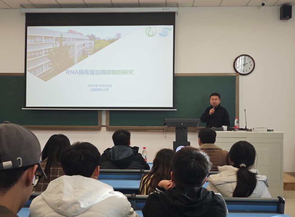 10月30日,beat365中文官方网站在南校区播馨楼204教室举办“沈药无涯讲坛”第590讲暨“智药讲坛”第81讲学术报告会。中国科学院上海药物研究所/烟台新药创制山东省实验室蒋翔锐研究员应邀进行学术交流,分享最新研究成果。院内外120余名师生参加学术报告会,报告会由副院长关奇主持。