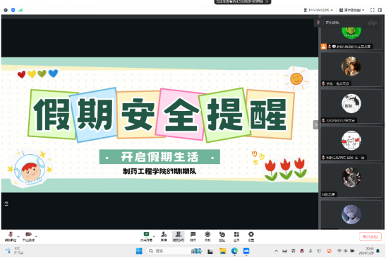 27日至29日,学院辅导员以期队或年级为单位,通过线上会议、安全知识问答竞赛、qq群和微信群推送相关安全信息等方式,向全体本科生及研究生进行安全教育宣讲,并通过学院官方公众号“沈药制药青年之声”面向全院学生发布寒假安全教育文章《“快乐放寒假,安全不放假”||大学生寒假安全提醒》,安全提醒主要包括外出安全、居家安全、防诈骗安全、食品安全四个方面,内容详实,帮助同学们提高安全防范意识和自我保护能力,营造了安全文明的假期氛围,督促同学们牢守安全底线,防患于未然。