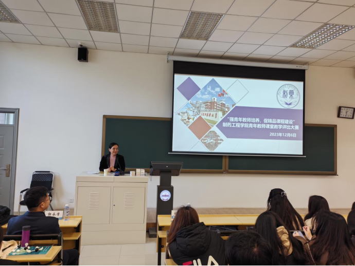 副院长郭永学为课堂教学评比活动致辞。郭院长提出,教学评比是展现青年教师教学技能的机会,搭建了教师相互学习、促进专业发展的平台,希望参赛教师能够以平和的心态赛出水平,通过教学评比进一步夯实教学基本功,提高教学基本能力,更好地担当起学生成长成才引路人的责任,培养更多的药学创新人才。
