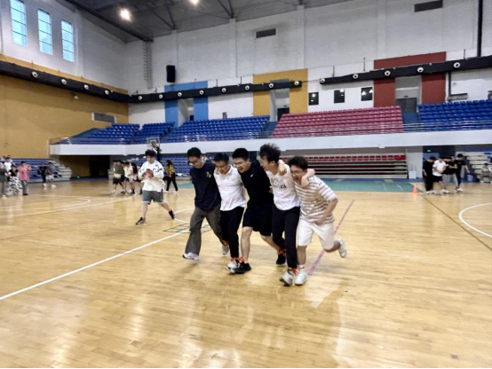 在五人六足比赛中,参赛队员们分成小组,每组五人,通过协调动作和默契配合,完成了一系列趣味挑战。这项活动不仅考验了参赛者的平衡感和团队协作能力,还增强了他们的互相信任和合作意识。