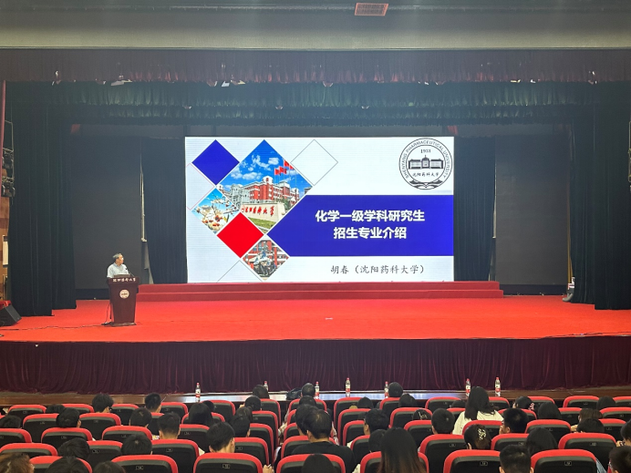 胡春教授介绍了化学学科教学科研团队、学科内各研究方向及招生导师,阐明了化学学科作为beat365官网药学优势学科的支撑和基础,同时又区别于其他高校化学学科独具特色的建设现状。他为同学们分析了近年来化学学科的招生情况与就业现状,从考试科目和参考书目两方面对同学们备课作出指导,为各位考生提供了清晰的报考思路。