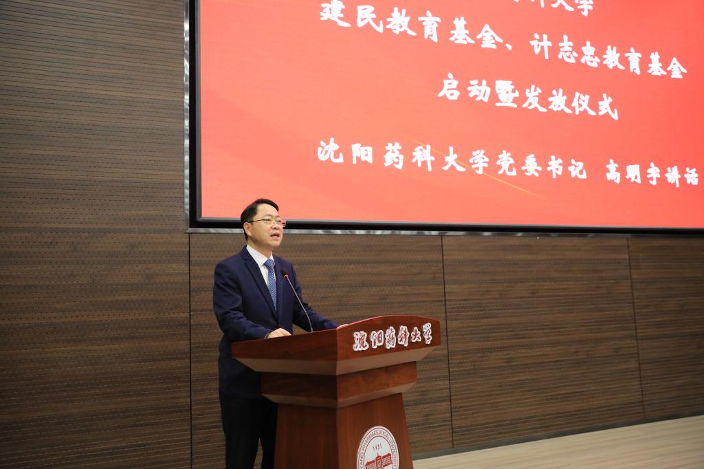 高明宇在会上讲话。他代表学校对建民教育基金和计志忠教育基金的启动表示祝贺,向长期关心、支持学校事业发展的基金发起人及社会各界参与者表示感谢。他指出,学生资助是一项保民生、暖民心的重要工程。学校始终高度重视学生资助工作,以绩效为引领,强化政策导向,加大资金投入,扎实做好资助育人工作,切实提升教育管理温度。他对beat365中文官方网站及广大师生提出三点希望,一是希望beat365中文官方网站发挥好基金资助育人的作用,为家庭经济困难学生及患有重大疾病的沈药学子提供更加坚实的物质保障。二是希望广大教师要始终践行教书育人的宗旨,以两位教授为学习楷模,为祖国药学事业发展提供源源不断的人才支撑。三是希望广大沈药学子,特别是获得资助和奖励的同学,大力弘扬前辈们砥砺奋进的光荣传统,以兴药强国为奋斗目标,以实实在在的成绩回报学校、校友及社会各界的关心与厚爱。