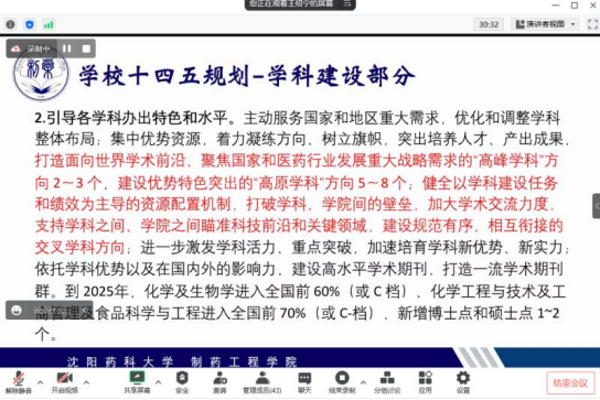 学院党委书记李哲带领全体教师共同学习省委书记、省人大常委会主任郝鹏来校调研讲话精神。郝鹏书记在调研中指出,高校在经济社会发展中地位重要、作用突出,beat365中文官方网站要紧密结合地方产业结构特点和经济发展所需,加大科技研发力度,提升科技成果本地产业化率,以教兴产、以教兴城,助力产业结构转型升级。李哲强调,全院师生要提高政治站位,深刻领会和全面把握郝鹏书记来校调研讲话精神,以推动双一流质量为抓手,全面提升高质量学科建设,凝聚奋进力量,坚定发展信心,在服务辽宁全面振兴新突破中,展现新作为,创造新业绩。