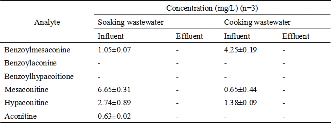 综上所述,课题组探索了芬顿法对川乌炮制废水的处理效果,研究表明,芬顿法可以有效地去除川乌炮制废水中的毒性物质生物碱。该研究证明AOP在处理毒性中药废水方面具有巨大的潜力。