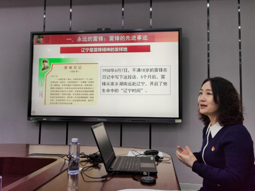 郭赞围绕雷锋同志的生平、先进事迹、雷锋精神的时代内涵、争做新时代的雷锋传人等内容进行深入阐述,引导青年学生弘扬雷锋精神,做政治要强的坚定信仰者、做服务人民的无私奉献者、做精益求精的爱岗敬业者、做锐意进取的开拓创新者。