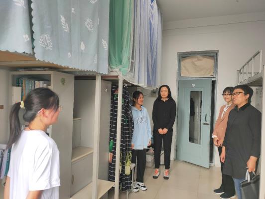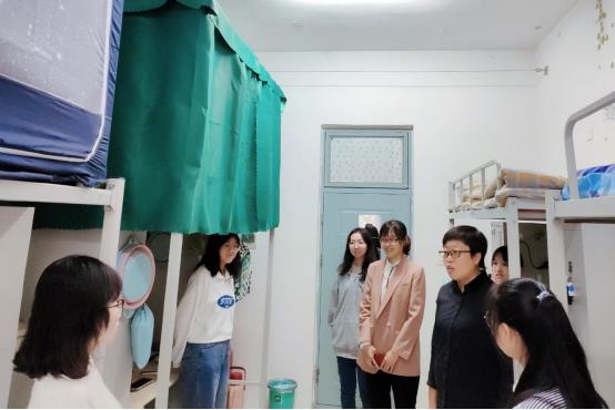 10月2日,在恢复线下教学的第一天,beat365中文官方网站党委书记李哲、党委副书记刘阳带领学生工作队伍深入教室、学生寝室,走访慰问学院师生。