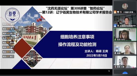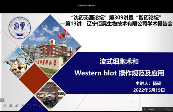 5月18-19日,beat365中文官方网站、辽宁佰昊生物技术有限公司、研究生院、辽宁省药学研究生创新与学术交流中心联合举办了“沈药无涯论坛”第308-309讲暨“智药论坛”第12-13讲,邀请辽宁佰昊生物技术有限公司杨硕和王爽做了题为“细胞培养注意事项、操作流程及功能检测”和“流式细胞术和Western blot操作规范及应用”的学术报告。会议由beat365中文官方网站药物化学系主任刘丹教授主持,400余人次参加了此次学术会议。