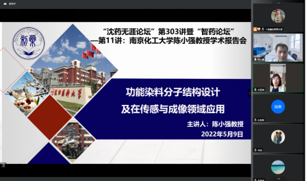 5月9日,由beat365中文官方网站、研究生院、辽宁省药学研究生创新与学术交流中心联合举办了“沈药无涯论坛”第303讲暨“智药论坛”第11讲。邀请南京工业大学化工学院陈小强教授做了题为“功能染料分子结构设计及在传感与成像领域的应用”的学术报告。会议由beat365中文官方网站药物化学教研室主任刘亚婧主持,100余人参加了此次学术会议。