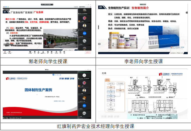 为进一步提升生产实习教学效果、丰富课程内容,特别邀请企业专家进行讲座。沈阳红旗制药公司的尹宏业经理对一系列固体制剂的生产案例进行剖析讲解。通过案例讲解,学生对药品生产过程有了更深入透彻的理解,对制药企业有了更具象的认知。