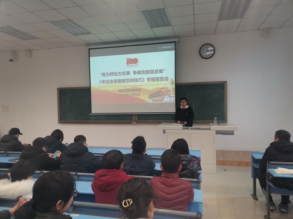 为提高学院教师课程命题规范性和命题质量,beat365中文官方网站于12月9日下午在南校区播馨楼104采取线上、线下相结合的方式召开“我为师生办实事、争做贡献促发展”考试命审题规范和技巧专题报告会,邀请辽宁省教学名师、药物化学教研室孙铁民教授做专题报告。院领导班子成员、学院教师参加了会议,校教学督导办公室主任罗向红正高级研究员、兄弟学院部分教师通过腾讯会议线上参会,报告会由院党委书记李哲主持。