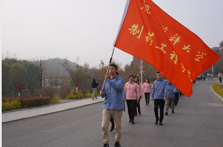 活动中,红色的院旗迎风招展,教职工们精神抖擞,步伐整齐,大家结伴同行,在健步走过校园内校庆景观标识处,共同回忆沈药的红色发展历程,脸上洋溢着喜悦与快乐,在享受健康运动带来的身心愉悦的同时,对沈药的未来发展无限憧憬。