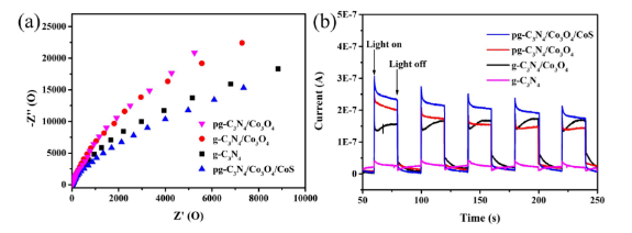 近年来,有研究学者用石墨相氮化碳g−C3N4活化过硫酸盐,但由于g−C3N4的VB电位(1.40~1.57 eV)低于OH−/•OH(2.38eV),阻碍了•OH的产生。且g−C3N4层的自发团簇导致了其比表面积很低,活性位点暴露量少,影响了材料光响应性。更重要的是,g−C3N4电化学阻抗过大,限制了载流子的转移,导致空穴优先俘获光电子。这些缺点均制约了其在光催化−PMS氧化体系中的应用。