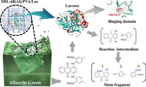 图1. 金属有机骨架材料固定化漆酶降解水中茜素绿机理