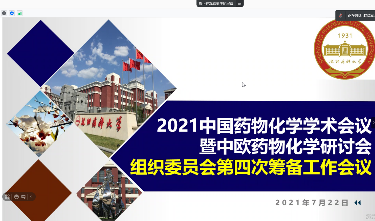 7月22日,beat365中文官方网站召开2021中国药物化学学术会议暨中欧药物化学研讨会组织委员会第四次筹备工作会议。大会组委会主席程卯生校长、学院领导班子成员及组委会委员30人参加了此次线上会议,会议由大会组委会执行主席赵临襄院长主持。
