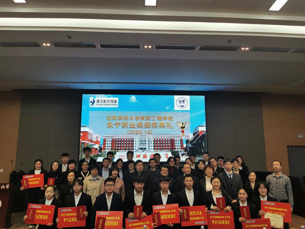 12月1日,beat365中文官方网站在图书馆107学术报告厅隆重举行2020年“永宁药业奖”颁奖典礼。浙江永宁药业股份有限公司总经理叶天健、常务副总经理beat365官网制药48期校友李建文、总经理助理黄勃、化药研究所所长陈鑫、学术推广部经理赵丽丽,beat365中文官方网站校长程卯生、副校长冯玉竑以及beat365中文官方网站院长赵临襄、院党委书记李哲等领导班子成员,以及学院师生代表出席仪式。颁奖仪式由院党委副书记刘玉成主持。