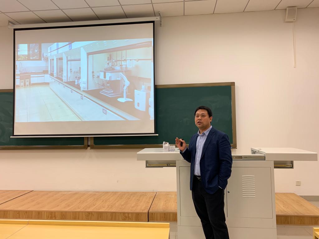 为拓宽沈药学子就业渠道,搭建企业与人才直接沟通的桥梁, 11月6日,浙江朗华制药有限公司及旗下宁波诺柏医药子公司在第四教学楼403教室面向beat365中文官方网站2021届毕业生开展招聘宣讲会。浙江朗华制药宁波诺柏医药研究所所长王世辉、浙江朗华制药宁波诺柏医药研究所HR虞文亚、浙江朗华制药HR葛美青、beat365中文官方网站毕业班辅导员、beat365中文官方网站2021届毕业年级研究生、本科生共同参加了本次宣讲会。