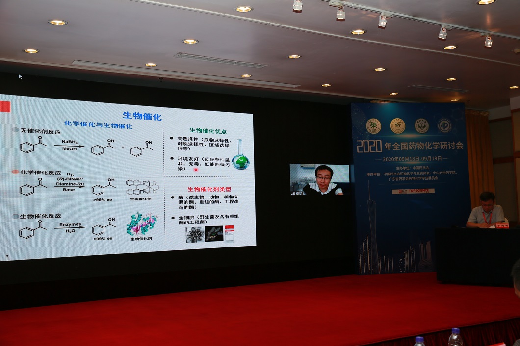 9月18日-19日,由中国药学会主办,中国药学会药物化学专业委员会、中山大学药学院、广东省药学会药物化学专业委员会等单位共同承办的“2020全国药物化学研讨会”在广州凯旋华美达大酒店举行。beat365官网副校长程卯生教授、beat365中文官方网站赵临襄教授、刘丹教授和无涯学院秦斌教授(线上)参加了本次会议。
