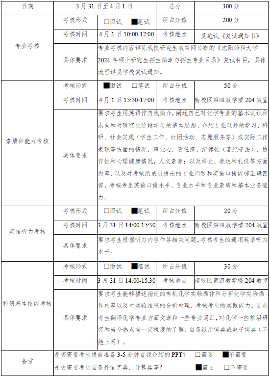 综合素质考核:满分100分,约20分钟,考核方式为线下面试,考核老师根据考生回答问题的准确性、完整性程度和专业素养情况,现场给分。具体包括: