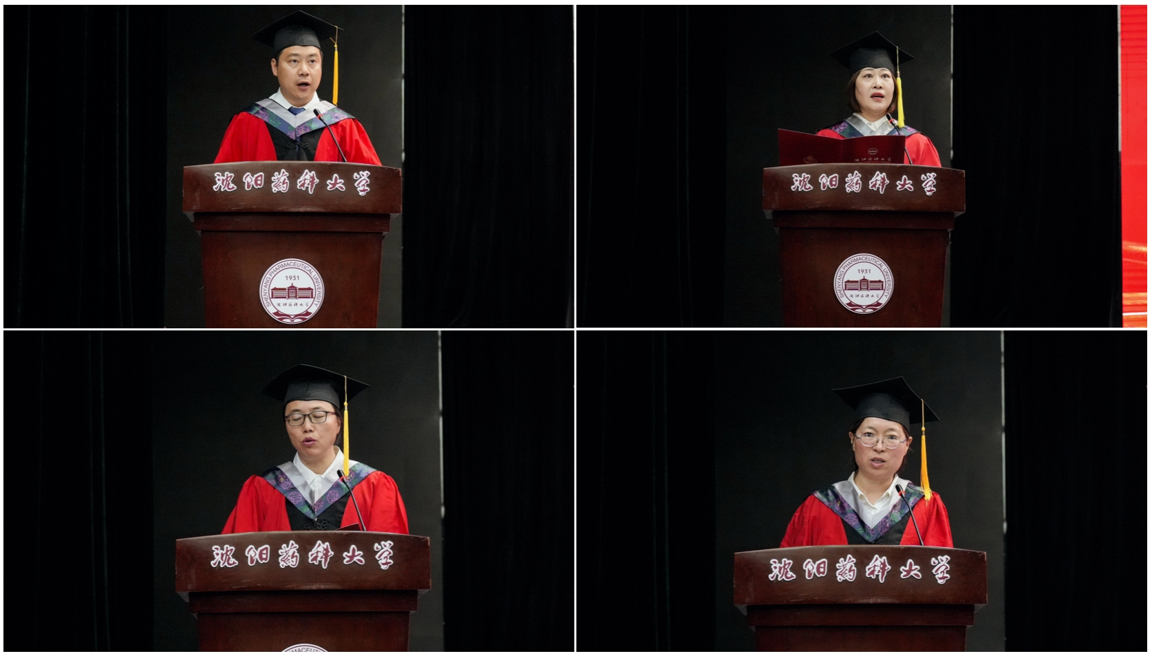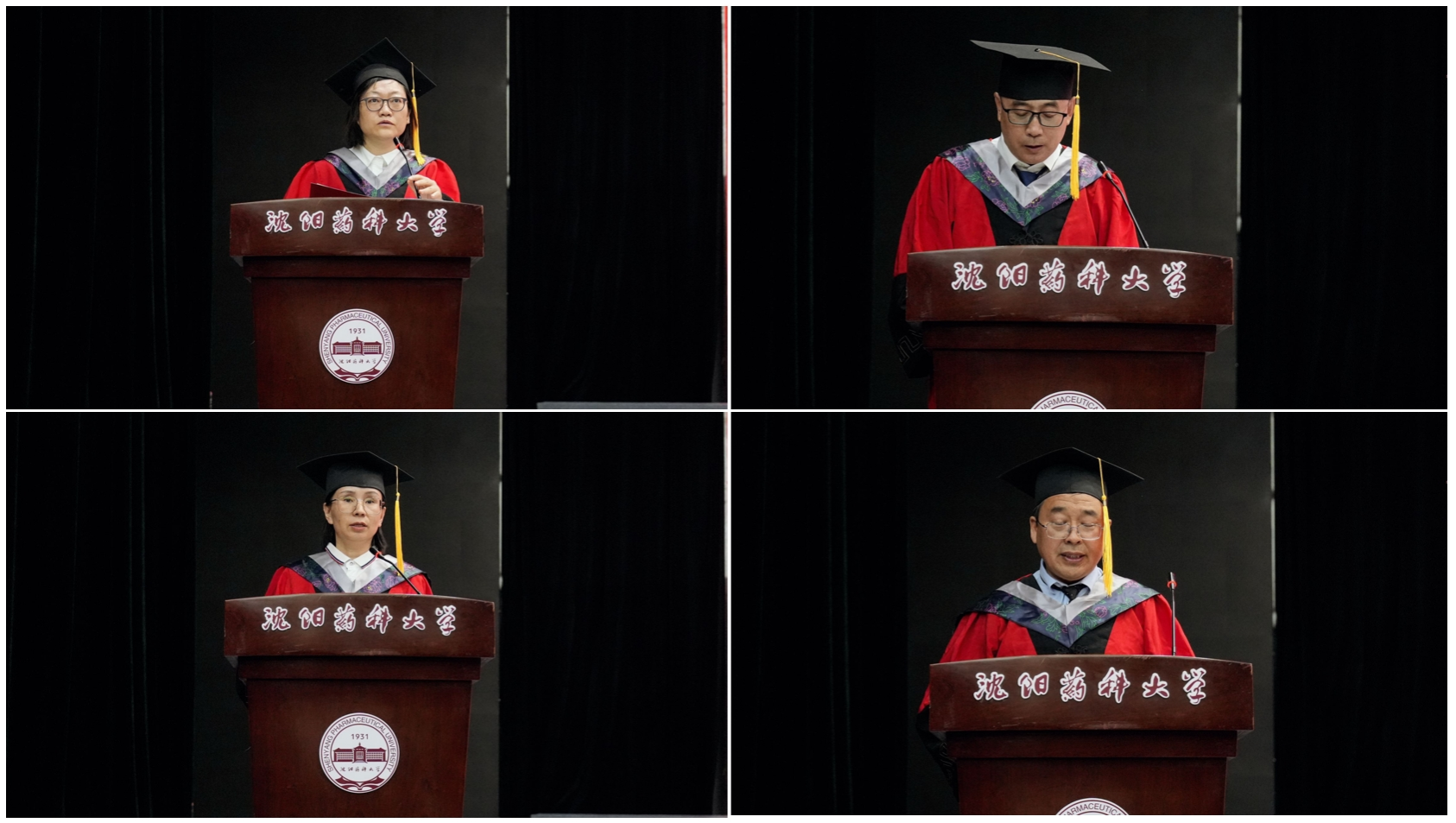 beat365中文官方网站院长刘洋教授宣读2024届博士学位授予名单;药物化学学科主席翟鑫教授、制药工程学科主席刘洋教授、化学学科主席王绍宁教授、化学工程与技术学科主席赵燕芳教授分别宣读各学科2024届硕士学位授予名单;制药工程专业负责人刘丹教授、药物化学专业负责人郭春教授、环境科学专业负责人张聪璐副教授、应用化学专业负责人胡春教授分别宣读2024届学士学位授予名单。