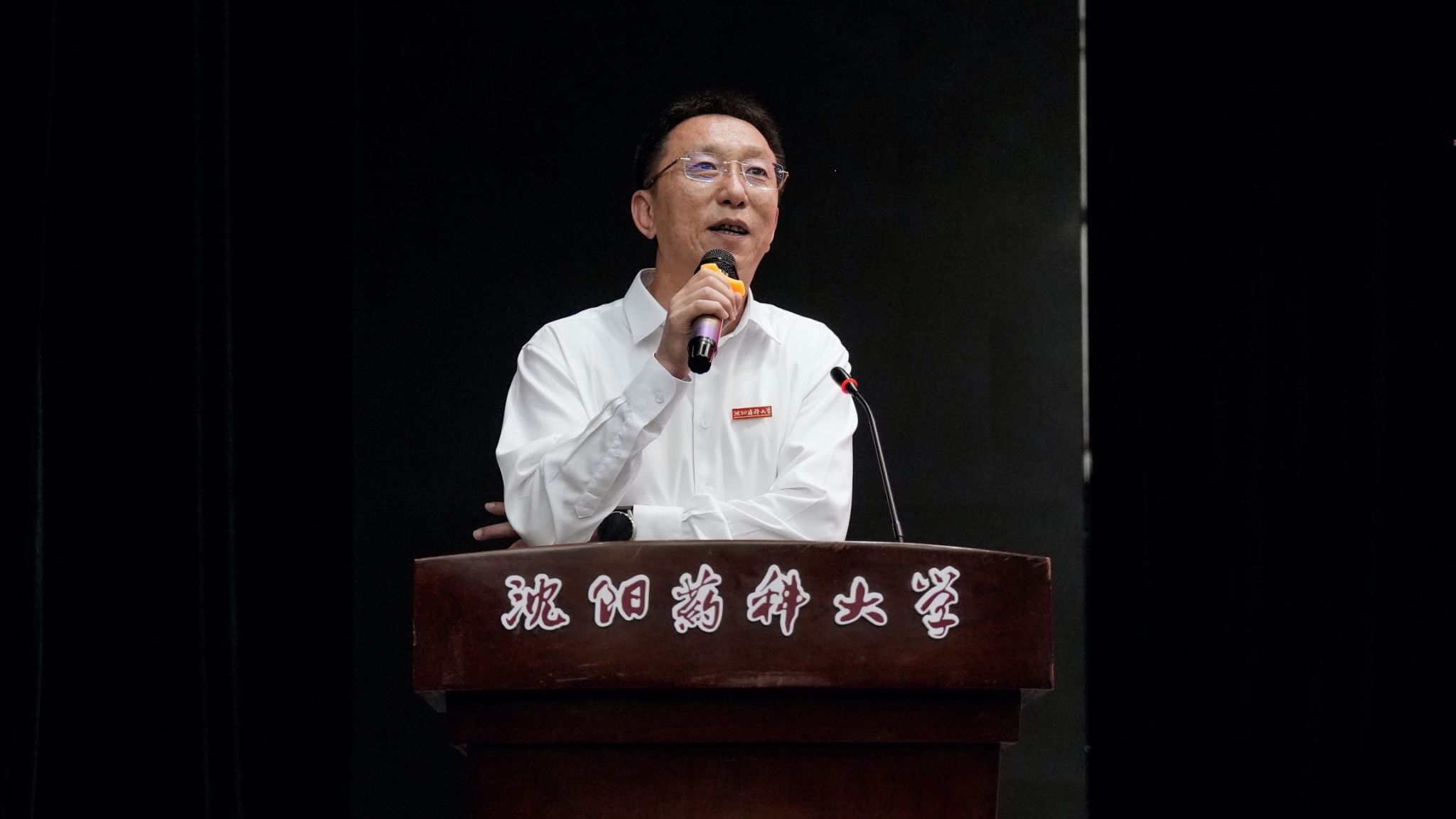 54期校友、辽宁海思科制药有限公司总经理梁勇作为校友代表发言。他回顾了在沈药度过的美好求学时光,分享了工作后的经历和感悟,毕业季是人生的一个重要里程碑,也是开始新旅程的起点,走入社会后,同学们将面临和校园中完全不同的生活。他鼓励毕业生们勇于拼搏,敢于尝试,在未来的道路上勇往直前,不断追求梦想,实现自己的价值。