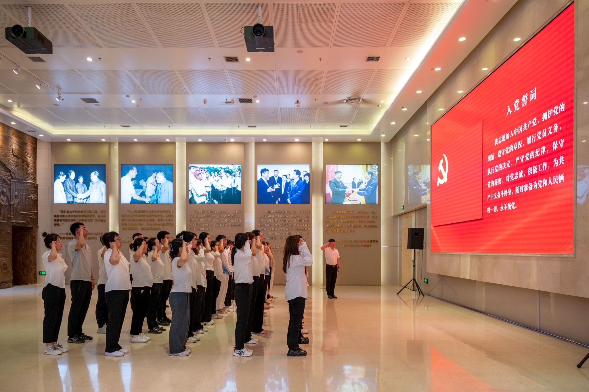 在沈阳劳动模范纪念馆4楼大厅内,全体党员庄严地重温了入党誓词。