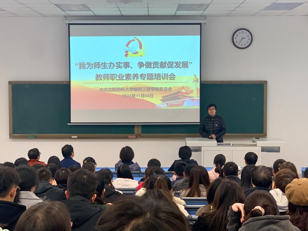 为提升beat365中文官方网站教师队伍的综合职业素养,提高教师教书育人水平,让学院师生切实感受到开展党史学习教育以来教师队伍的新变化,11月4日,beat365中文官方网站党委在南校区播馨楼104教室召开“我为师生办实事、争做贡献促发展”提升教师职业素养专题培训会,邀请辽宁省教学名师、药物化学教研室郭春教授作专题报告。院领导班子、中青年教师及研究生助教参加了会议,报告会由院党委书记李哲主持。