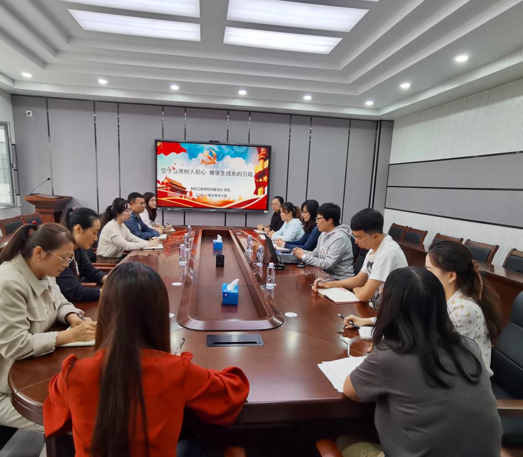 为深入学习贯彻习近平总书记关于干部队伍建设的重要论述,切实把党史学习教育成果转化成为师生办实事的实践行动,提升学院学生工作队伍的育人水平和业务能力,促进青年教师成长成才,beat365中文官方网站党委书记李哲于9月18日在制药楼227会议室,围绕“坚守立德树人初心做学生成长的引路人”主题,为学生支部的教师党员和积极分子上了一堂生动的专题党课。学院党委副书记刘阳、全体辅导员及教学秘书参加了会议。