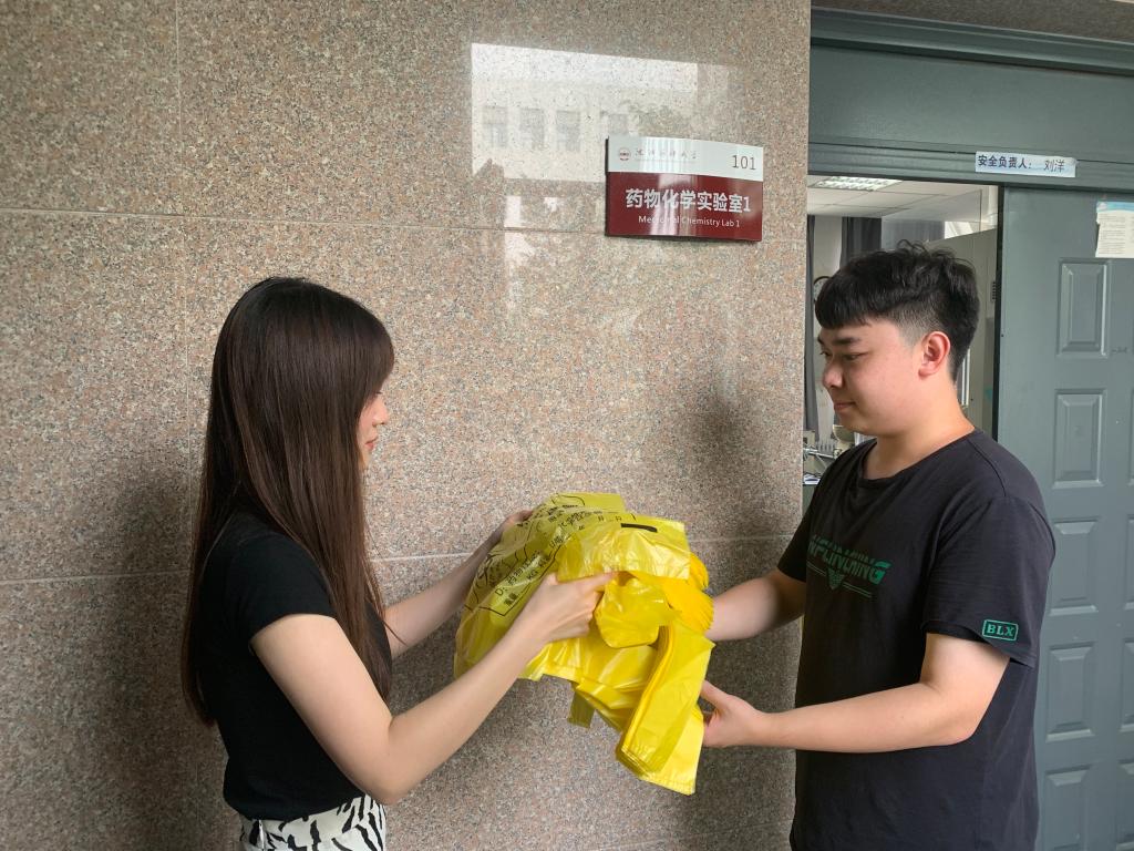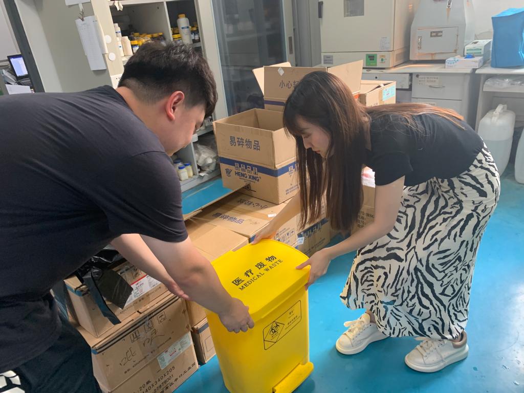 会后,学院党委实地调研各实验室医疗废物垃圾处理的实际需求,购置7个医疗废物垃圾桶及100个医疗废物垃圾袋,根据各楼层实验室分布情况,科学配置分发医疗废物回收设备。同时将各楼层医疗废物回收设备配置情况发布在实验室负责人微信群中,确保每个实验室的同学都能熟知本层楼医疗废物的投放位置。