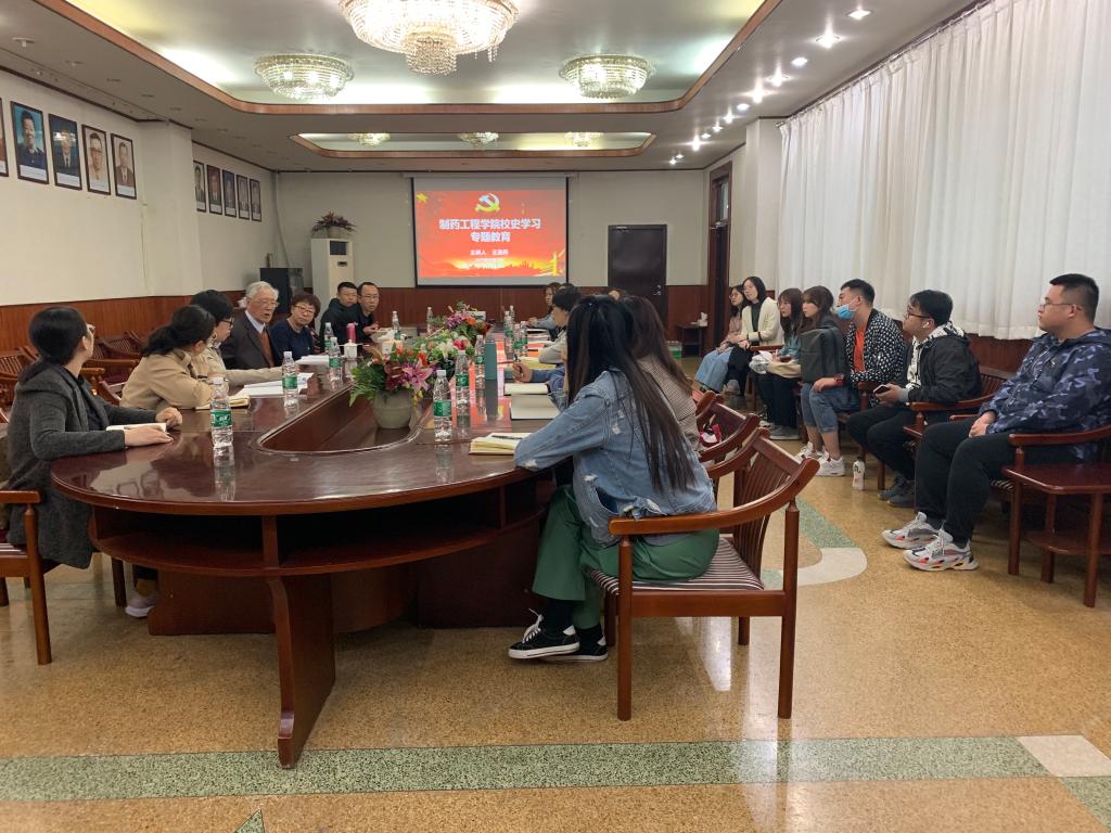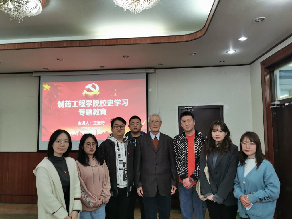 为扎实推进党史学习教育,引导学院师生学党史、铭校史、知校情,传承沈药红色基因,弘扬沈药精神,4月22日,在校本部图书馆二楼会议室,beat365中文官方网站党委举办“校史馆里追忆峥嵘岁月、专题党课尽抒沈药情怀”专题党课,特邀beat365官网27期校友、原beat365中文官方网站副校长、曾在beat365官网有机教研室任教的王圣符教授为学院党委理论中心组(扩大)师生上党课。beat365中文官方网站院长赵临襄、党委书记李哲、副书记刘玉成、教工及学生党支部书记、全体辅导员及首批全国高校“百个研究生样板党支部”——beat365中文官方网站博士研究生党支部党员代表参加活动。