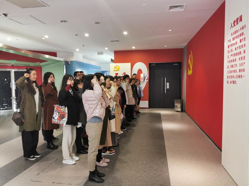 随后,在学院党委专职组织员张达盼的领誓下,党员教师在鲜红的党旗下,举起右拳,重温入党誓词:“我志愿加入中国共产党,拥护党的纲领,……为共产主义奋斗终身,随时准备为党和人民牺牲一切,永不叛党。” 再忆入党初心,牢记对党承诺,坚毅的誓言,在红色影视长廊回荡。