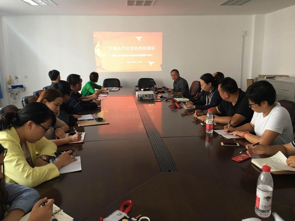首先,张伟书记以PPT的形式做中心发言,张伟书记以“全面从严治党的准则遵循”为题,从“党内政治生活的实践与探索是《准则》的源泉、严肃党内政治生活是解决党内存在问题的重要途径、党内政治生活必须以党章为根本遵循、坚定理想信念是加强和规范党内政治生活的首要任务、坚持党的基本路线是加强和规范党内政治生活的根本保证、加强和规范党内政治生活的重要目的是坚决维护党中央权威、严明党的政治纪律是加强和规范党内政治生活的重要内容、保持党同人民群众的血肉联系是加强和规范党内政治生活的根本要求、坚持民主集中制原则是加强和规范党内政治生活的制度保障等九方面详细解读了《关于新形势下党内政治生活的若干准则》。接下来,张伟书记结合beat365官网党建工作的实际情况,逐条解读了辽委办发〔2017〕15号-《关于严格党的组织生活制度的意见》的文件精神。