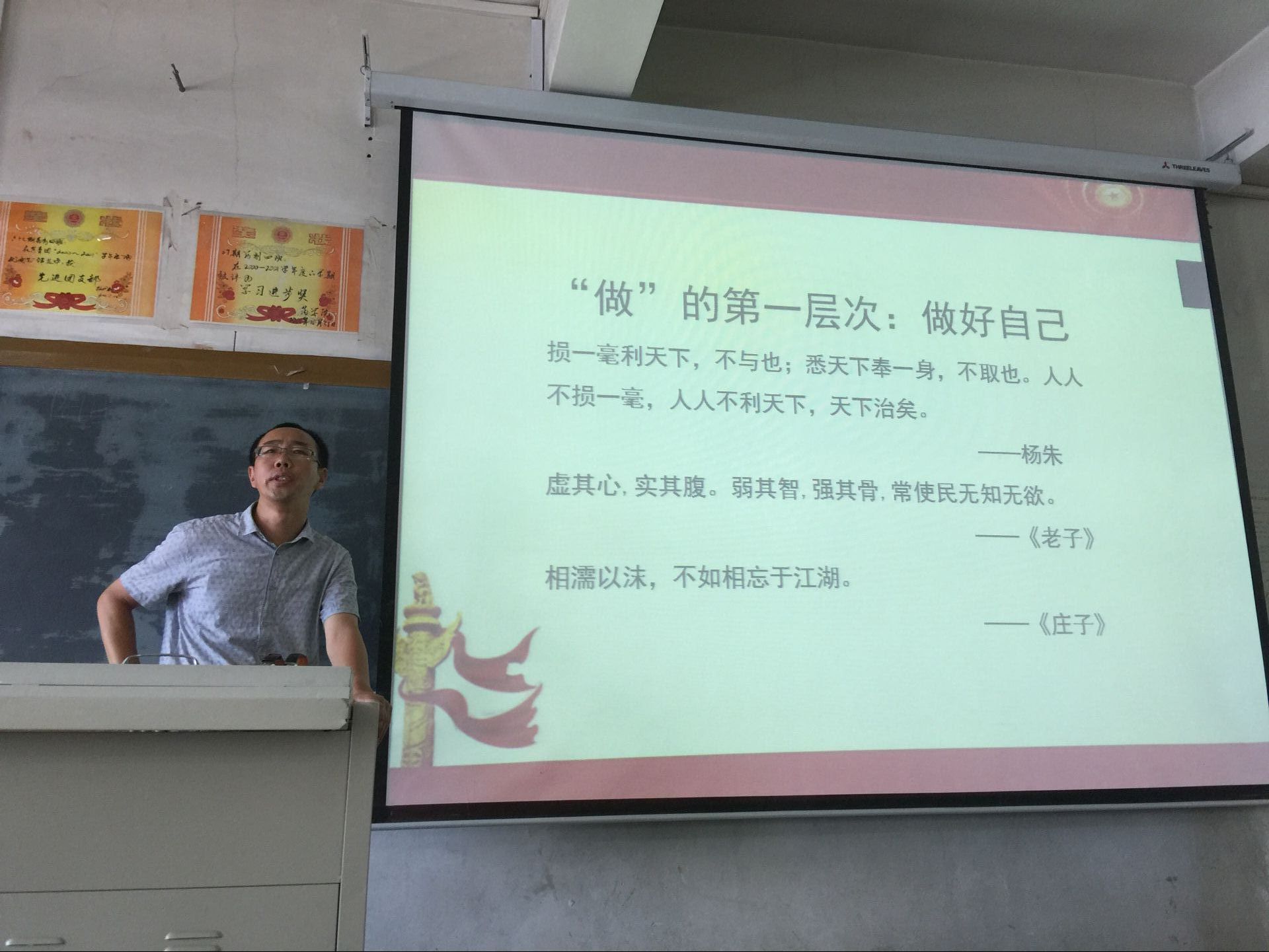 刘玉成副书记用其广博的学识、独特的视角、诙谐幽默的方式,给支部全体党员同志呈现了一堂内容生动全面的党课,使大家对如何做一名合格党员有了更加全面的认识。刘玉成对如何做一名合格党员在“做”字上给大家提出了要求,即分为第一层次:做好自己;第二层次:守住底线;最高层次:独立人格,以及最高境界即知行合一。通过本次党课学习,使支部广大学生党员受益匪浅。