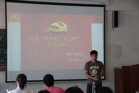 按照支部“两学一做”学习教育计划安排,6月16日,79期学生党支部举行了“讲规矩、有纪律”专题学习讨论,39名党员参加了学习讨论。讨论会由支部书记唐丹主持。