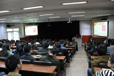 为了更好的贯彻落实党的群众路线教育实践活动,beat365中文官方网站分党委于4月11日下午,在图书馆五楼第一学术报告厅召开了党的群众路线教育实践活动专题辅导报告会。报告会由学校宣讲团成员、社科部郭赞副教授主讲,分党委书记张伟主持,学院全体党员参加了本次辅导报告会。